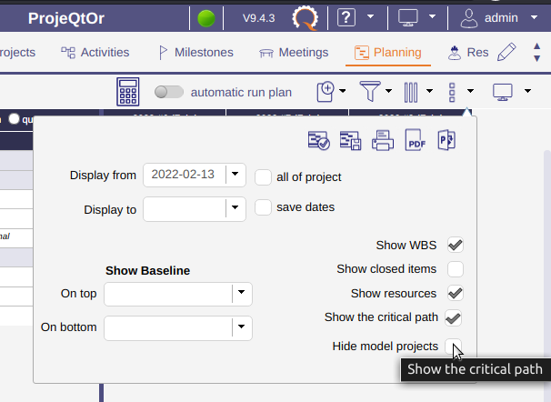 In V9.4.3, I found an incorrect tooltip. In the Planning screen, the option "Hide model projects" has the same tooltip as the option above: both say "Show the critical path".