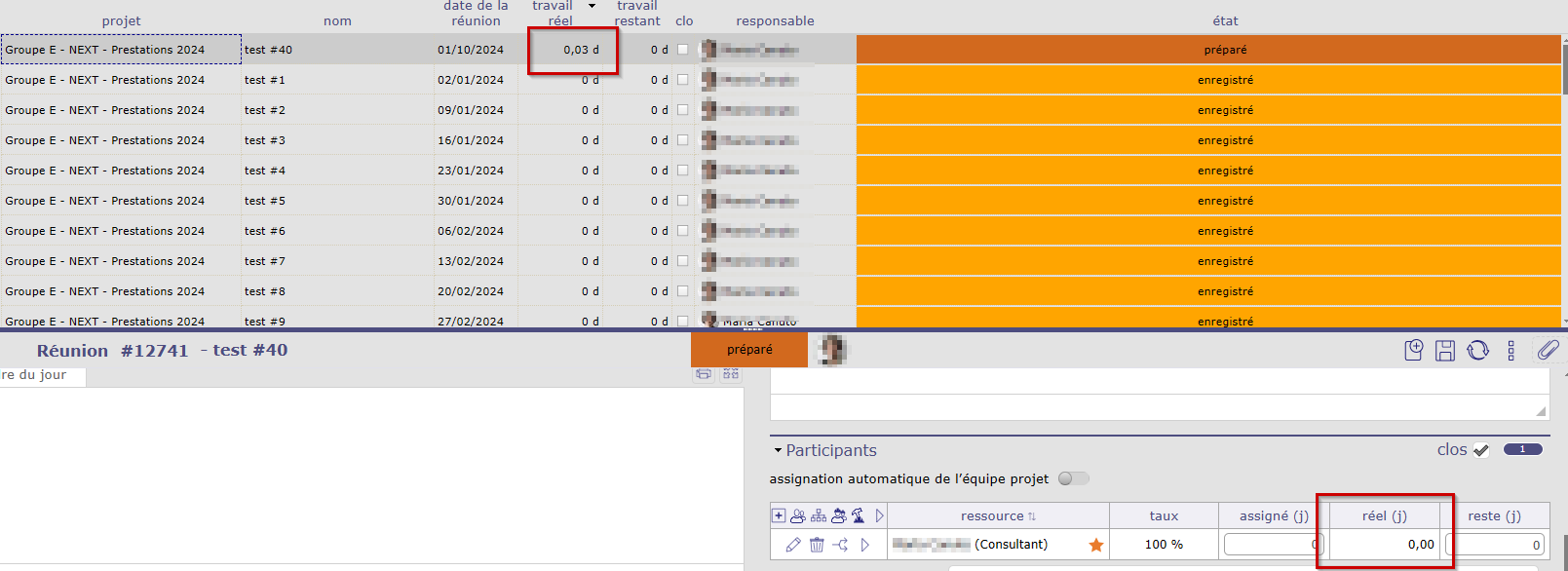 On each unitary meeting of those, the assignements are opened, but when we fill our timesheet sometimes (and it seems really random) we cannont save it, because we get this error :