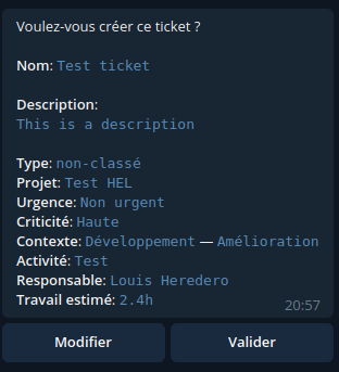 INSERT INTO menu (id, name, idMenu, type, sortOrder, level, idle, menuClass, isAdminMenu, isLeavesSystemMenu) VALUES ( 200000000, 'menuTelegramTemplate', 88, 'object', 686, 'ReadWriteAutomation', 0, 'Automation', 0, 0);INSERT INTO navigation (name, idParent, idMenu, idReport, sortOrder) VALUES ('menuTelegramTemplate', 129, 200000000, 0, 21);CREATE TABLE telegramtemplate ( id INT(12) UNSIGNED NOT NULL AUTO_INCREMENT, name VARCHAR(100) NOT NULL, template VARCHAR(500) DEFAULT NULL, idMailable INT(12) DEFAULT NULL COMMENT '12', idType INT(12) UNSIGNED DEFAULT NULL COMMENT '12', idle INT(1) UNSIGNED DEFAULT '0' COMMENT '1', PRIMARY KEY (id), KEY emailtemplateMailable (idMailable) );ALTER TABLE mailtosend ADD idTelegramTemplate INT(12) UNSIGNED DEFAULT NULL;Please Connexion or Create an account to join the conversation.
