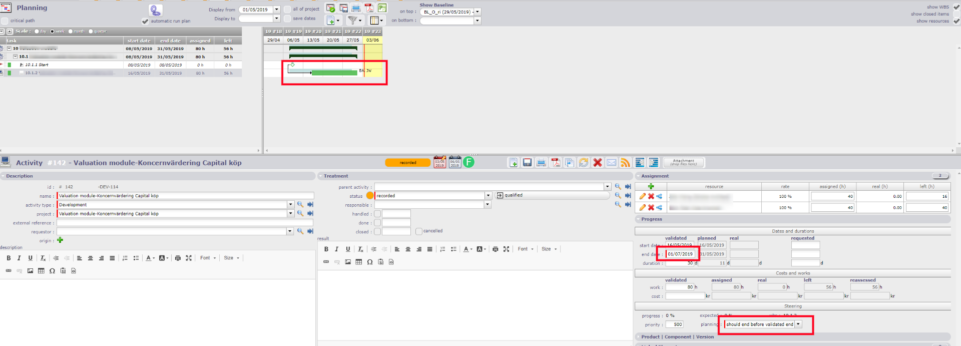 This software will attempt to respect the validated end date, but if a constraint exists elsewhere (generally the availability of resources that is insufficient) so it plans at the earliest but after the validated date because it indicates clearly the reality of things.