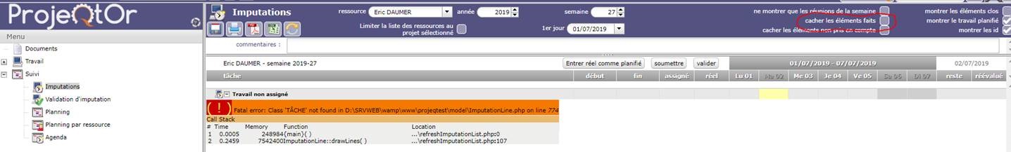 Hello, we encounter an error in the menu "IMPUTATION".