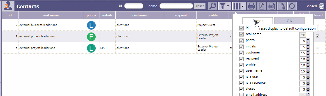 The ressources are here, the users are here, all the users have the "case à cocher" "Contacts" but I dont see anything in the contact view (and it is the same if I'm on a project for example, or a ticket, and want to see a contact) :-(