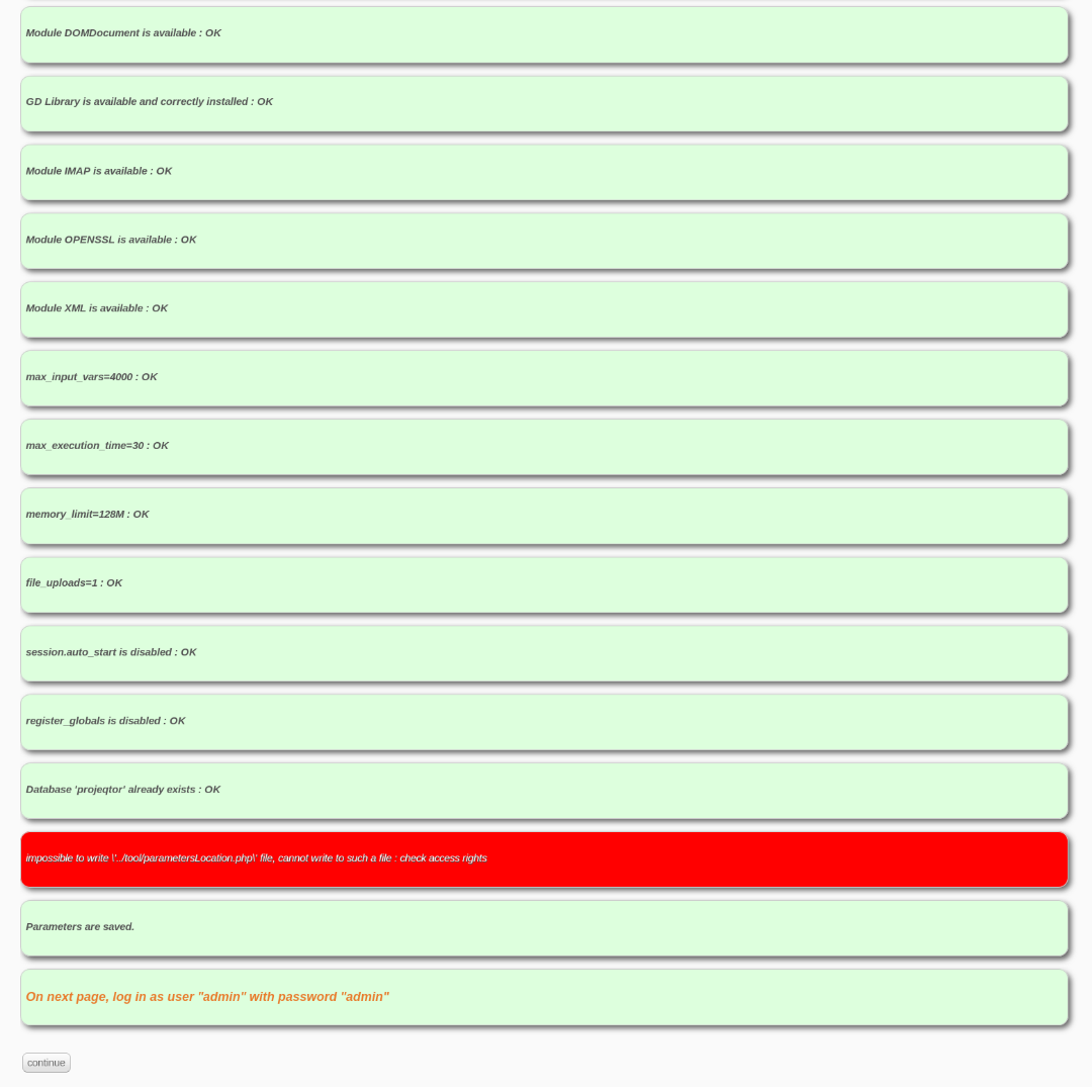 impossible to write \'../tool/parametersLocation.php\' file, cannot write to such a file : check access rights