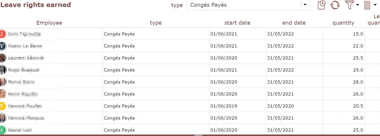Knowing that it's january, 19th and I created a Contract CDI with the classic reglemented leave period in France, how can I get this :