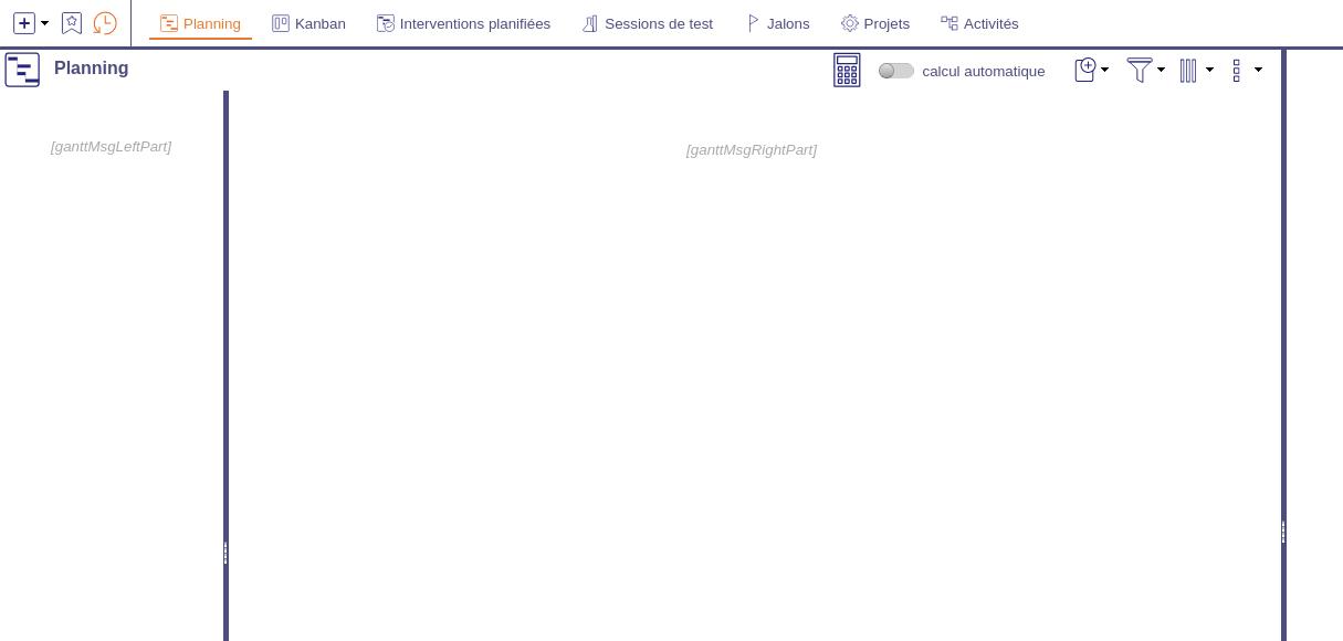 the case where the Gantt chart does not display any data is either because you have not yet saved any project in your database, or because you do not have at least the reading rights on the projects.