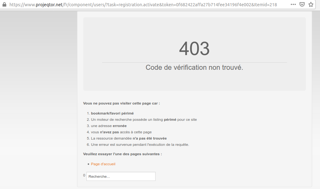 This link does not work : it open an error page "403 Code de vérification non trouvé".