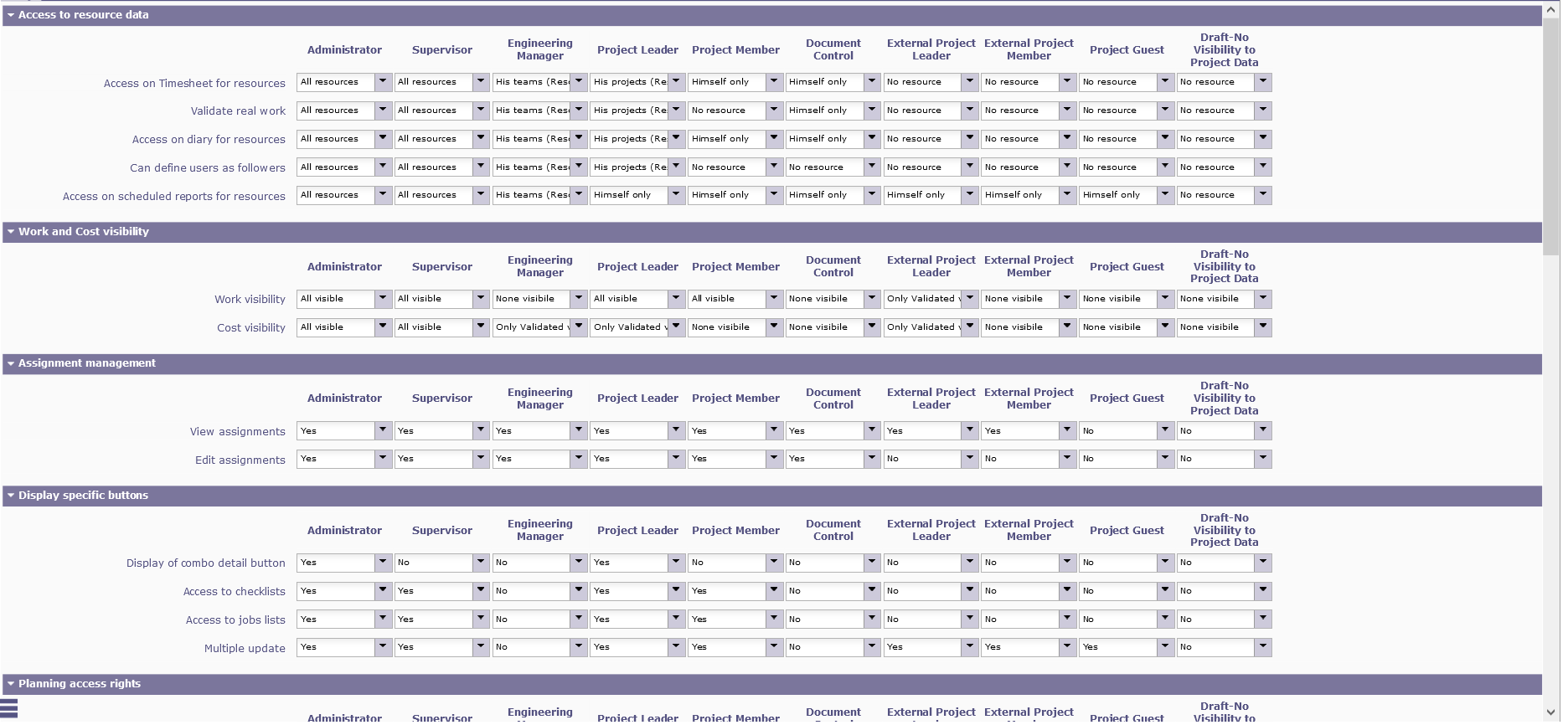 I tried to use the resource planning menu - limit display for resources to get the display for certain resources. However, I found that only a few resource name is shown which I expected that all resource names will be listed (as logined as admin). I suppose the resources to be shown in the dropdown list is according to the user profile access right as set in Access Right Menu, right?