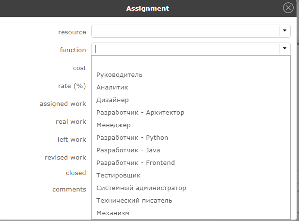 So, do I understand correctly that it is impossible to select a function on the ticket for that resource?