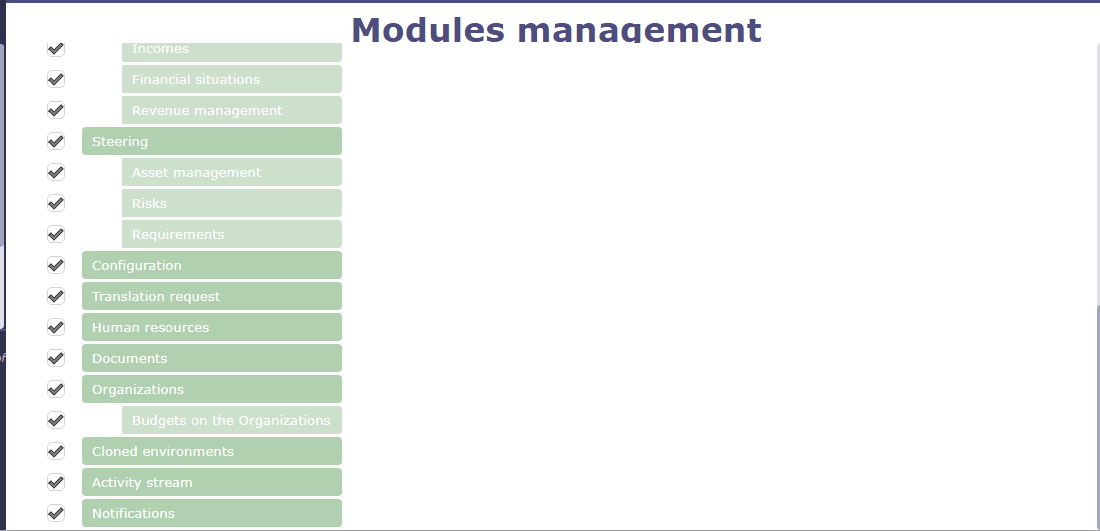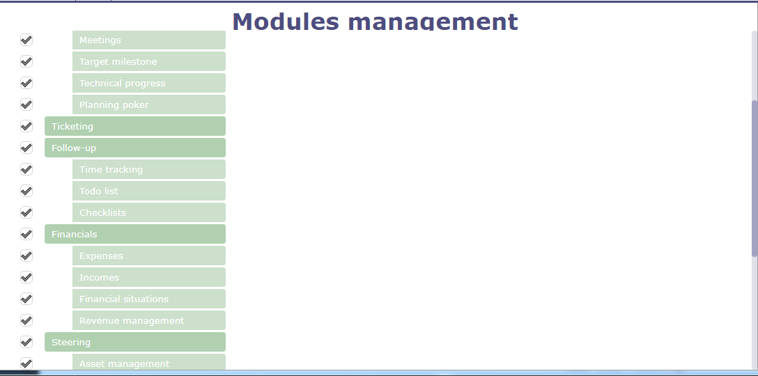 hello this the screen that I have on the tolls setting parameters as you see only two items please find also the modules activatios status