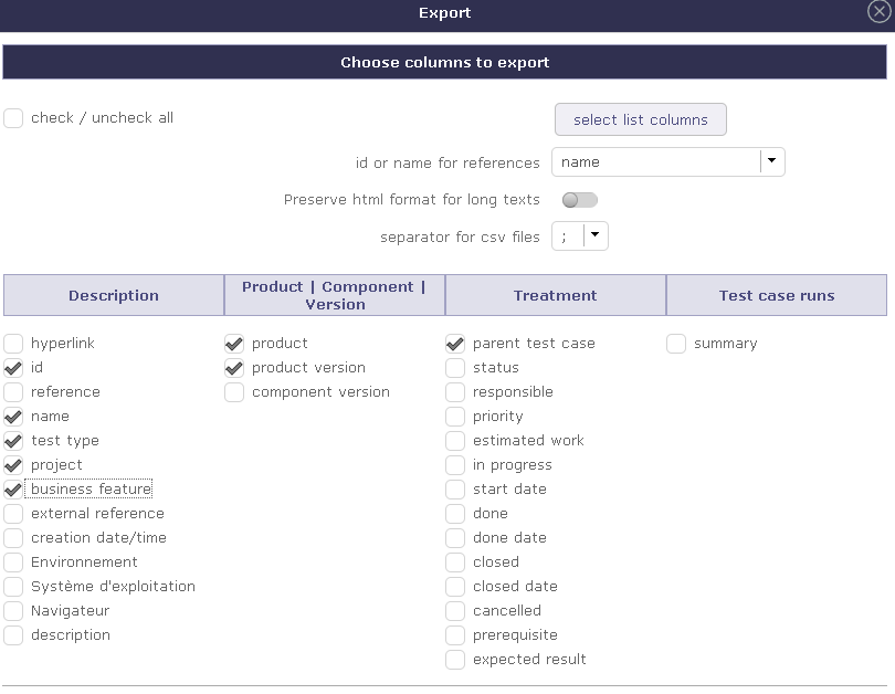 while exporting test cases into CSV, there is a "buisness feature" item in the Description column, but I can't find a place to define it ...