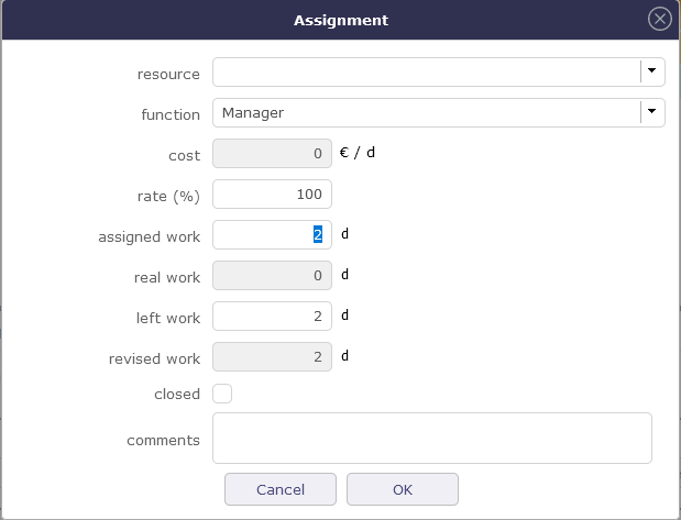 When trying to enter a function in assignment -- to act as generic ressource, since don't know yet who will be effectively affected -- an SQL error appear