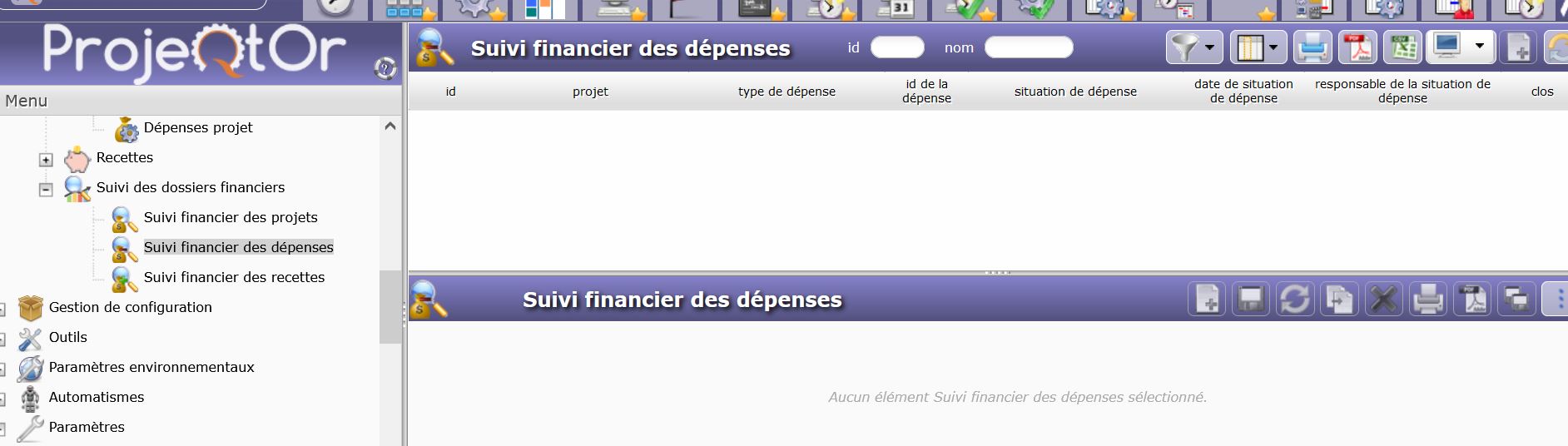 ProjeQtOr free project management software - "Expenses financial situation" screen stays blank - ProjeQtOr