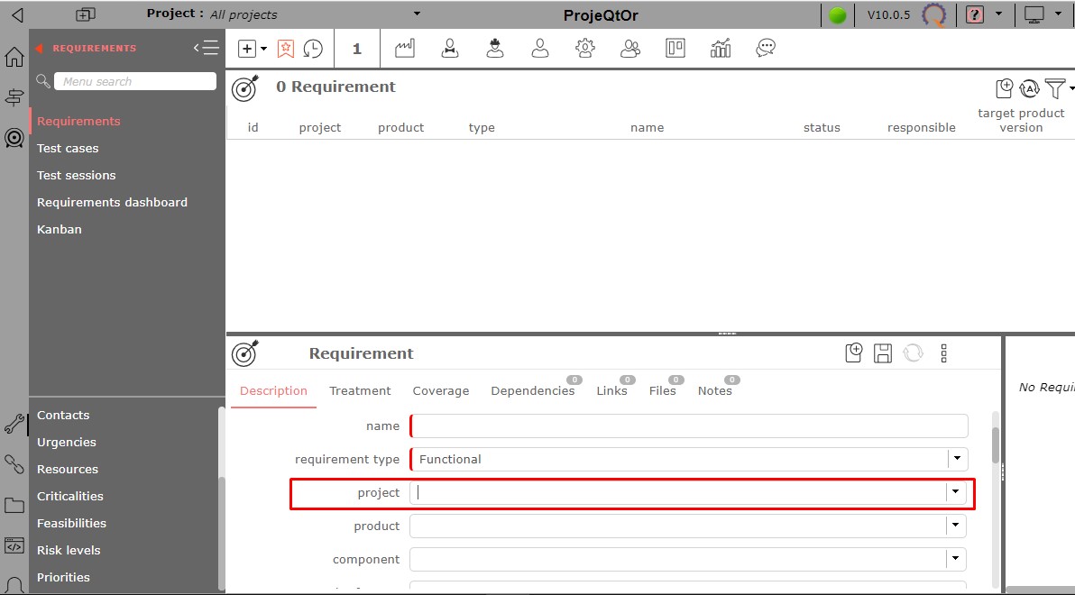 For requirements, you must have a profile lower than manager + for the project field to be mandatory.