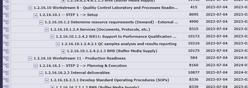 I have a large project (+9800 activities) organized in several workstreams with interdenpencies. In reality there are less activities, but a lot of levels (indents).