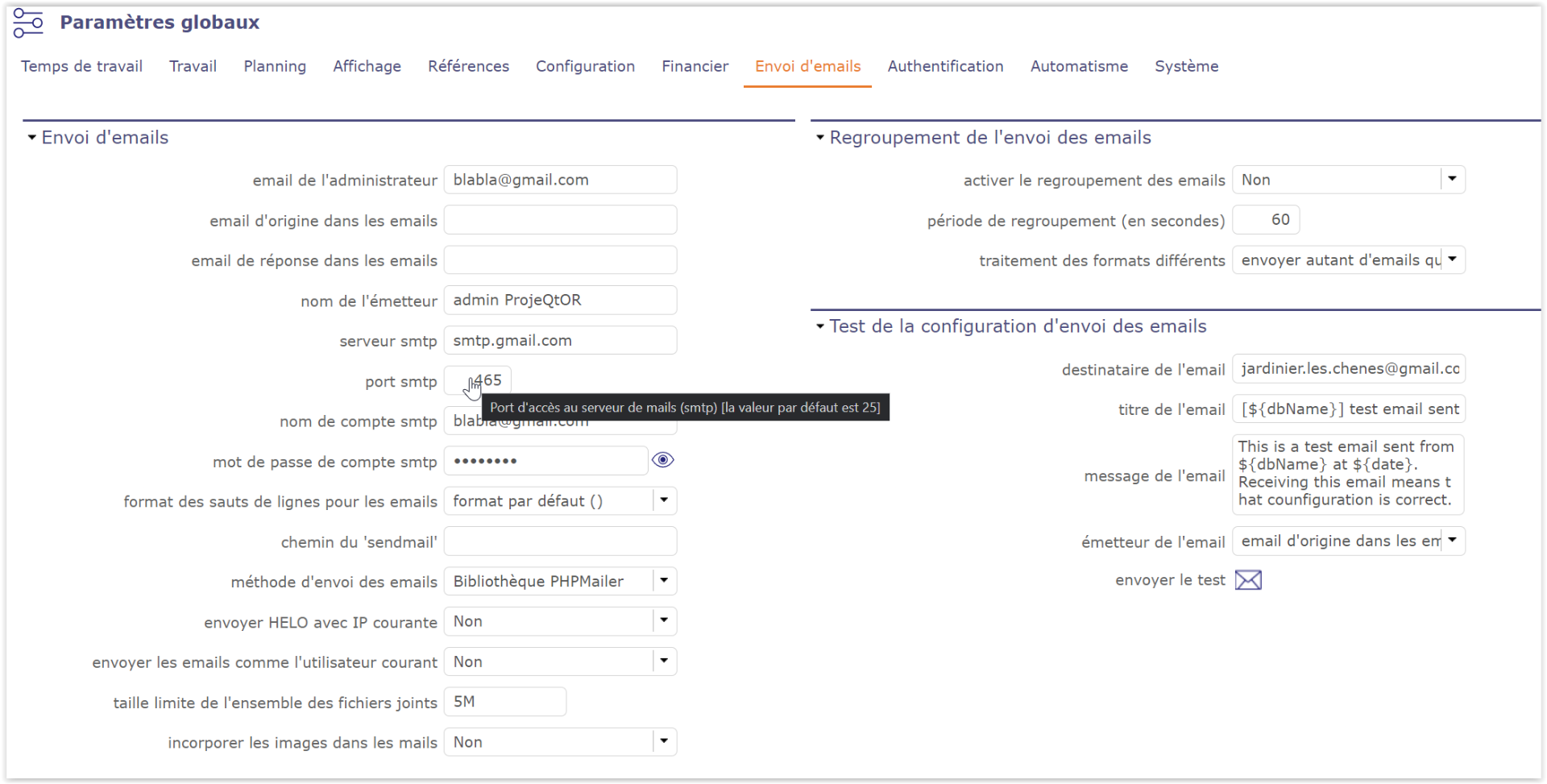 ProjeQtOr free project management software - [SOLVED] email parameters - ProjeQtOr