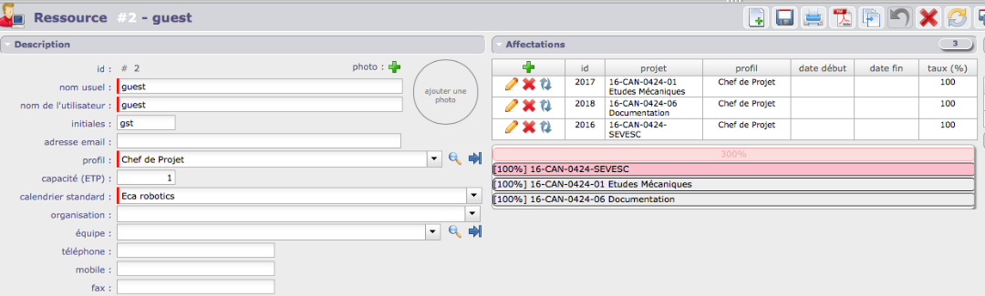 this ressource is affect on 16-CAN-0424 (project) 100%