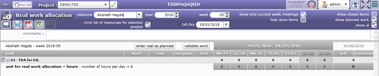In that case the GUI is misleading! If a control is not effective, it must be grayed out or even hidden!Additional precision: On the real work allocation screen, the filter on the project does not work voluntarily regardless of the name of the project that appears. Only the "imputation" filters that are part of this screen work. The selected resource does have a view of all the projects on which it is assigned for and can thus qualify quickly its work for one or severals of them.