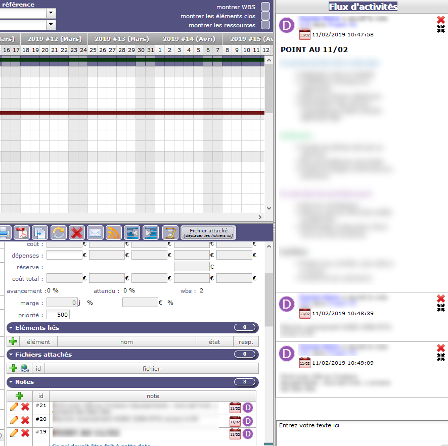 In the differents screen (project, activity, ticket,....), there is the possibility to display a colum which display the different notes.